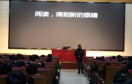 赵老师亲切和蔼、风趣幽默,以考试形式为话题引出本次讲座内容,并由此围绕“为什么要阅读”“读什么”以及“怎么读”展开叙述。他不仅给同学们推荐了可阅读的书目,还介绍了多种读书方法,包括素读、快读、慢读和选读。对学生典型作文的评点更是深刻到位,同学们都认真聆听、主动思考、积极互动。